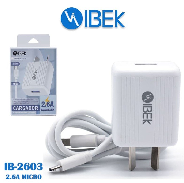 CARGADOR IBEK 2.6A V8-MICRO CABLE DESMONTABLE IB-2603